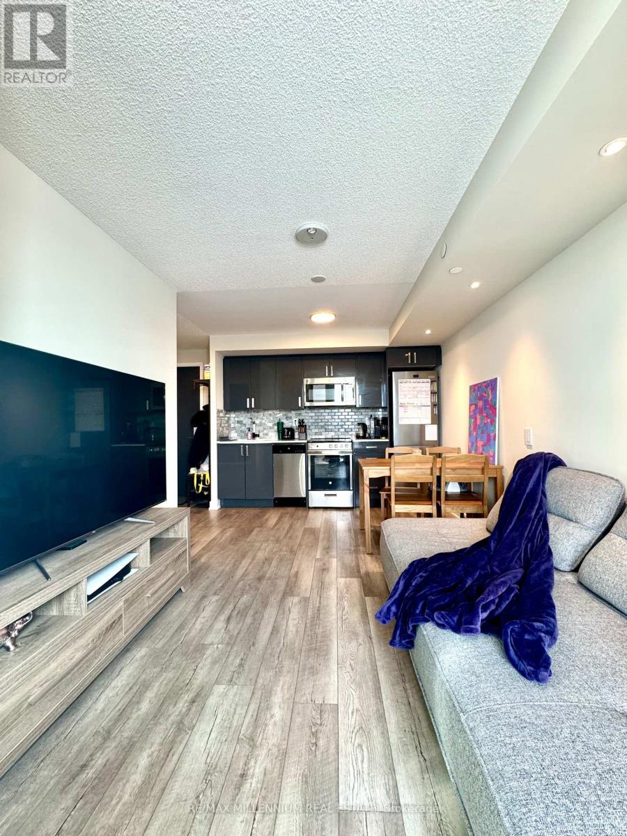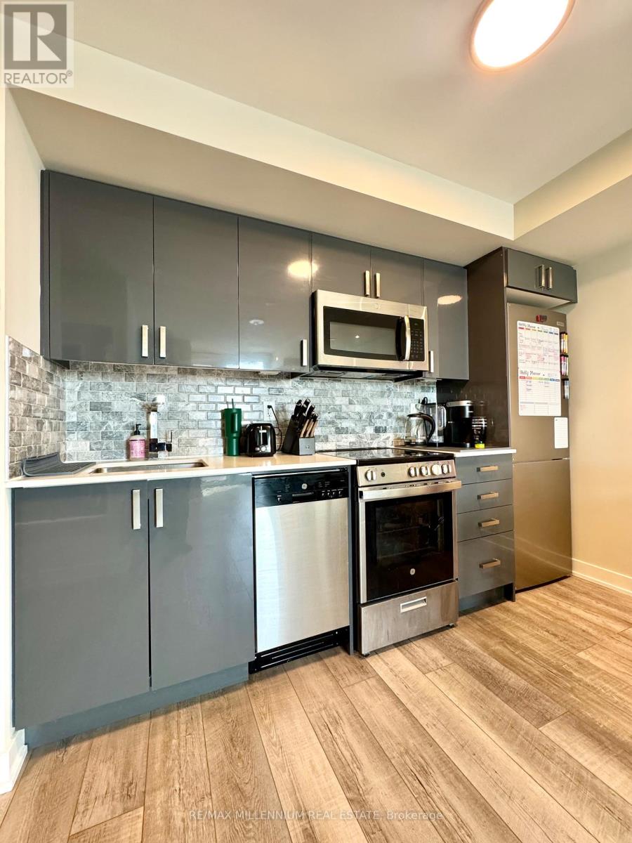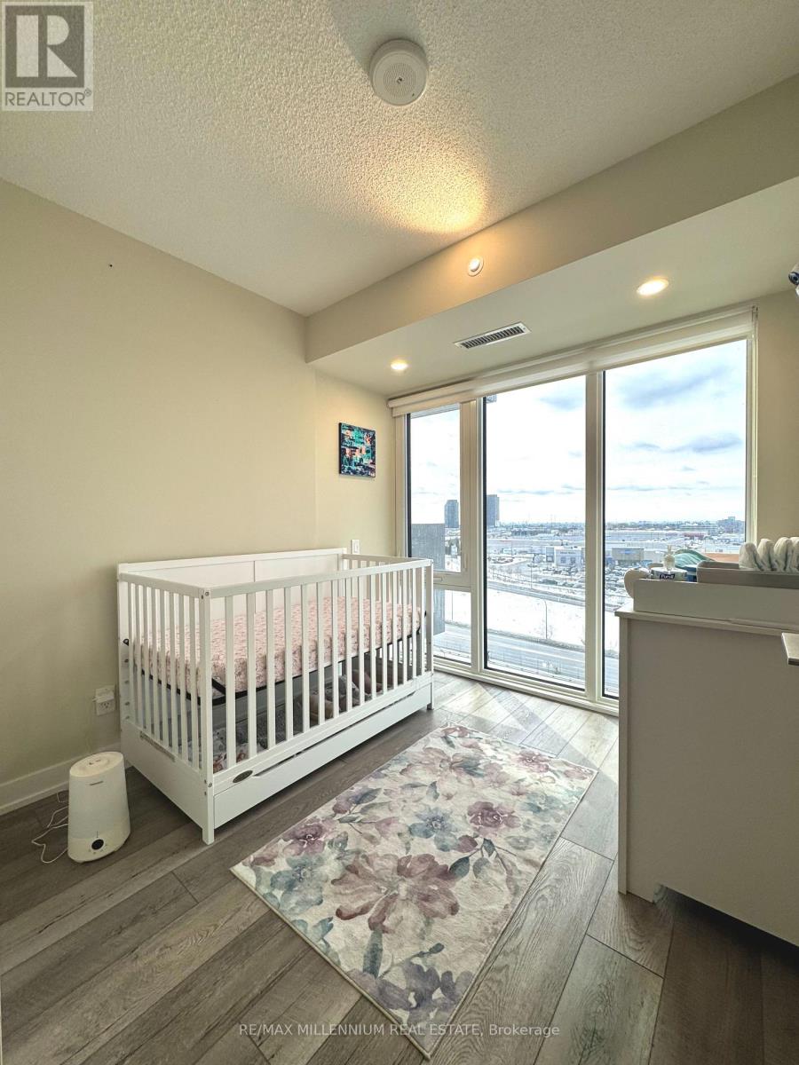 Welcome to this bright and inviting 2-bedroom condo with soaring 9-ft ceilings and floor-to-ceiling windows that fill the space with natural light and showcase beautiful west-facing sunset views. The modern kitchen features quartz countertops, a stylish backsplash, and stainless steel appliances perfect for both everyday living and easy entertaining. Enjoy incredible building amenities with maintenance fees that include internet, a fully equipped fitness centre, party room with pool table and TV, BBQ patio, and even a fenced yard for pets. Added conveniences like 24/7 concierge, on-site daycare, underground parking, a storage locker, visitor parking, and EV charging make daily life effortless. Step outside to Wilson Subway Station for an easy commute, with quick access to Hwy 401 and Allen Rd. Walk to Billy Bishop Plaza for shopping and dining, including Costco and Starbucks, and reach Yorkdale Mall in just one subway stop. (id:31565)