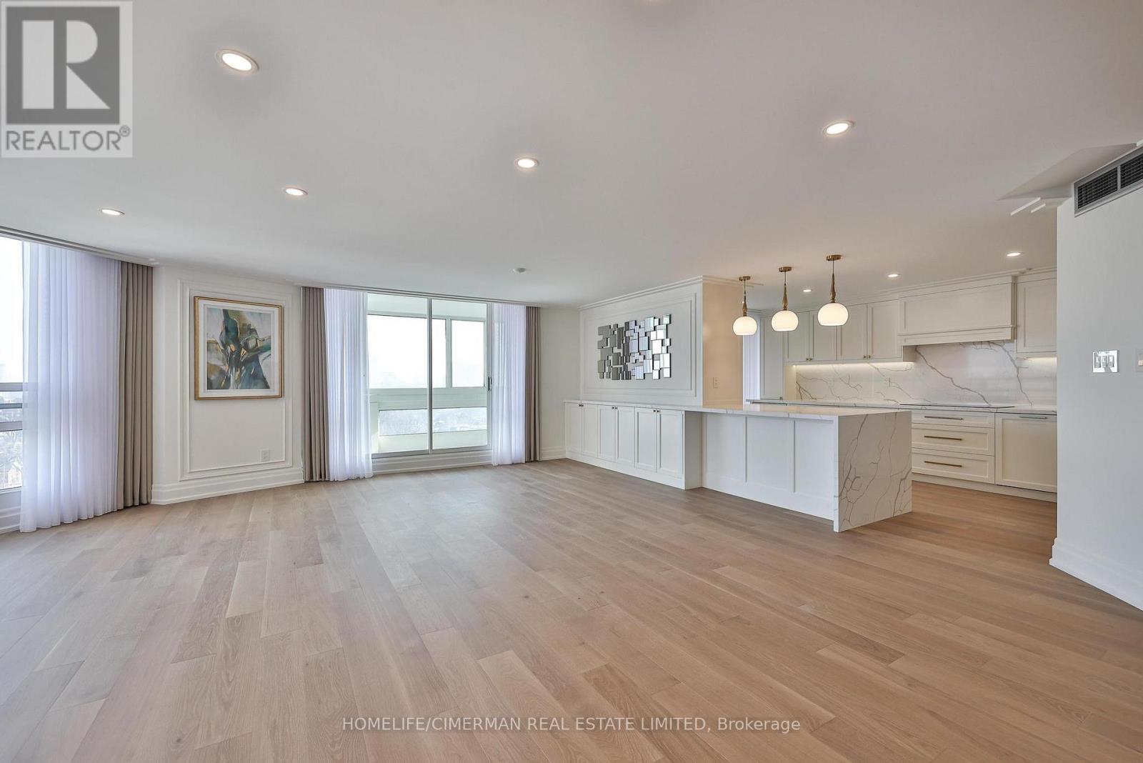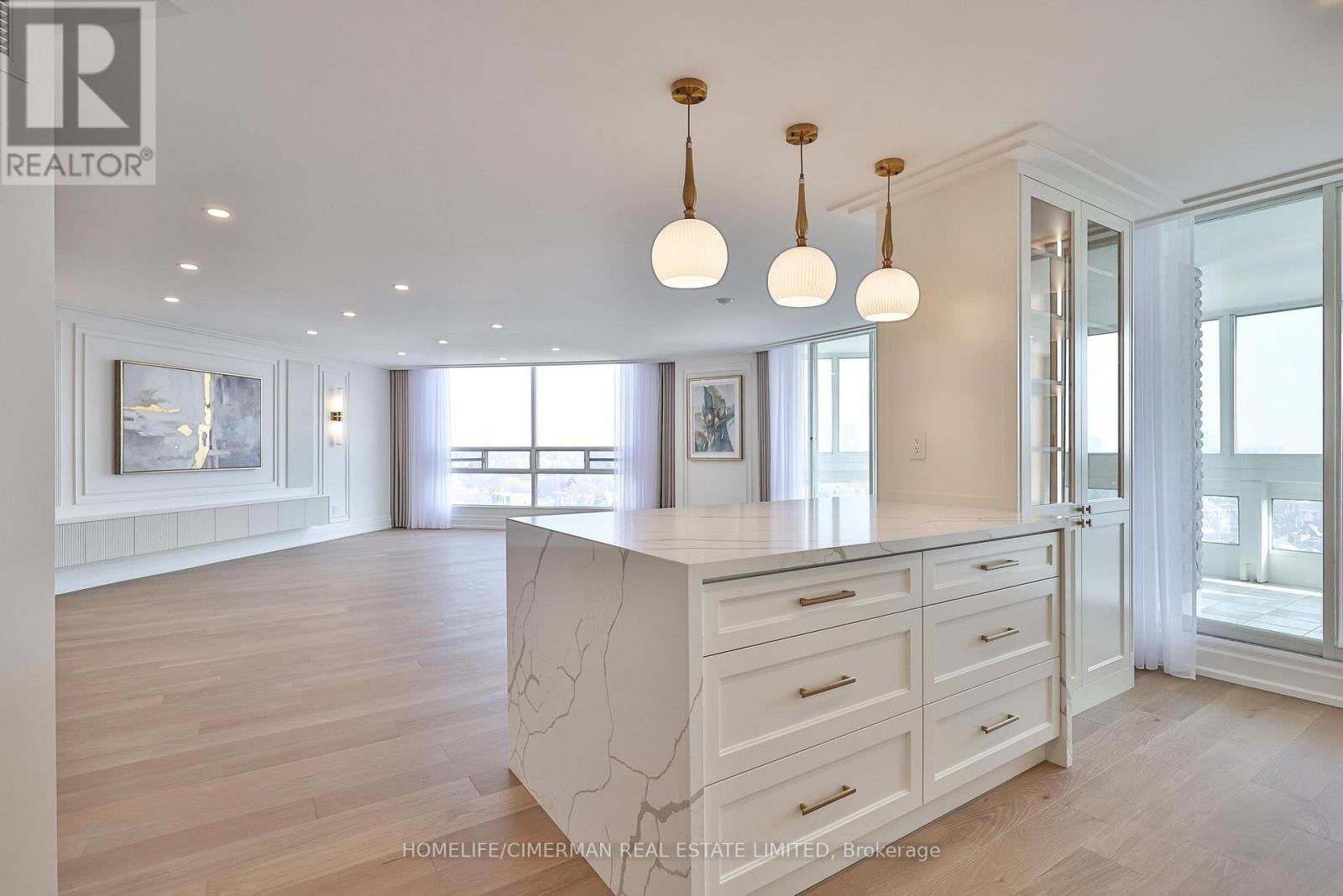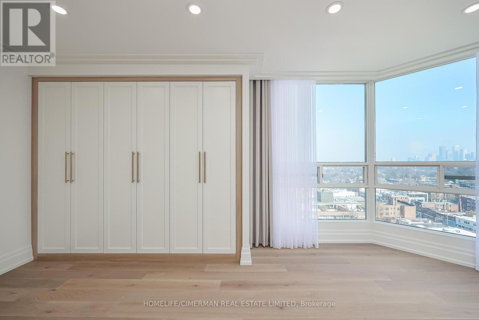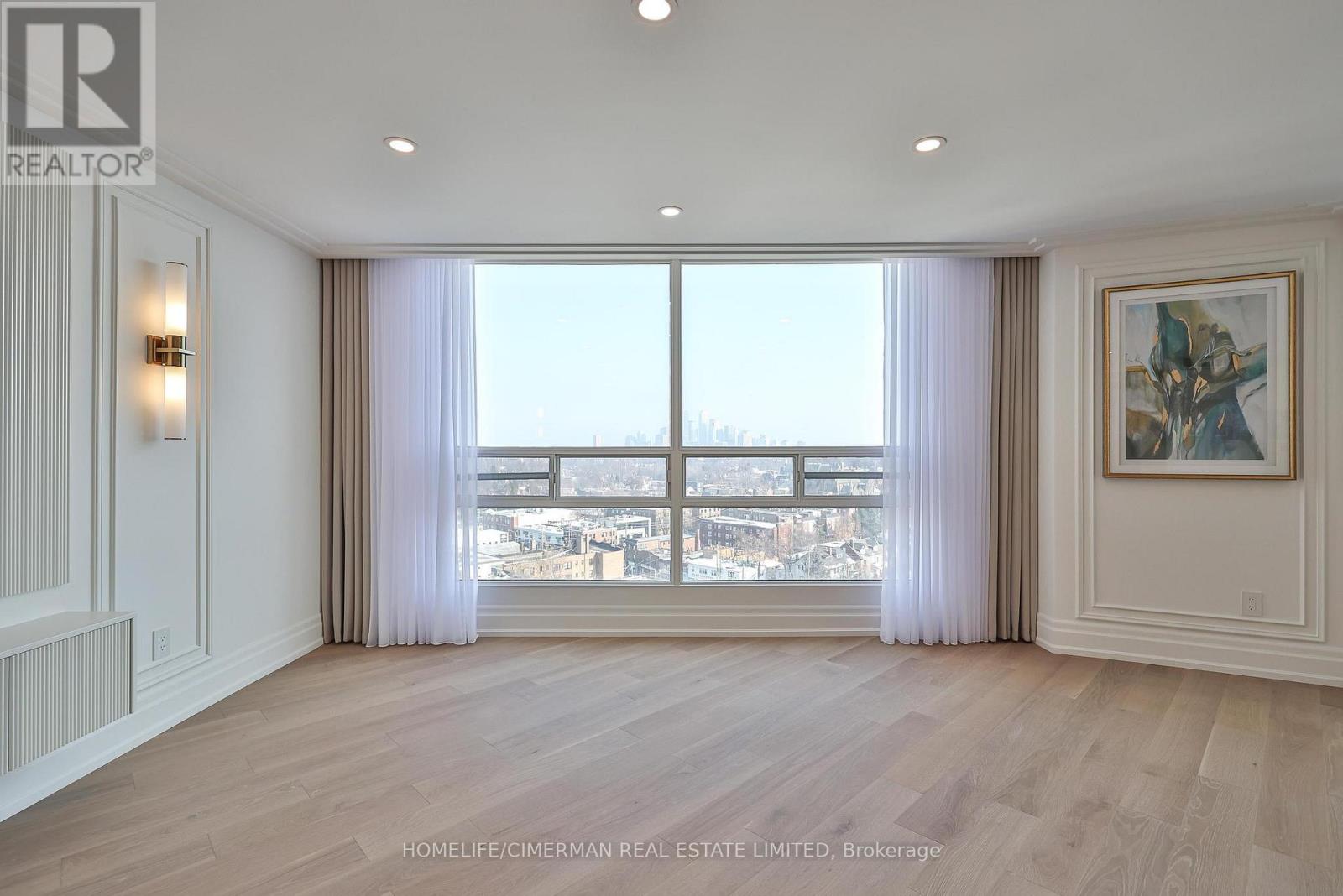 *Perched on a high floor within one of Forest Hill's most distinguished boutique residences, this exceptional suite has been completely redesigned and finished to the highest standards* Showcasing breathtaking, unobstructed southeast views of the city skyline, floor-to-ceiling windows flood the home with natural light and frame magnificent panoramic vistas , creating a bright and elevated atmosphere throughout*Offering 1,939 sqft of beautifully finished interior space, including an approximately 200 sqft solarium-style enclosed balcony, the residence impresses with its generous scale and seamless layout. The solarium serves as a versatile extension of the living area - ideal as a home office, reading retreat, or tranquil lounge overlooking the city. The open-concept design flows effortlessly, with well-proportioned bedrooms thoughtfully positioned for privacy and comfort*Every detail has been carefully curated*Premium engineered hardwood flooring, extensive pot lighting, and elegant crown mouldings enhance the sophisticated interior* A custom built-in living room wall unit creates a stunning focal point, blending style and functionality*The designer kitchen is both elegant and practical, featuring quartz countertops and backsplash, a centre island with breakfast bar, pantry, and abundant custom cabinetry*The spa-inspired ensuite offers a custom vanity with built-in drawers and shelving, heated towel bar, and a separate glass-enclosed shower with bench seating - delivering a true retreat experience* Bedrooms are equipped with custom built-in organized closet systems*A separate laundry room adds convenience with side-by-side washer and dryer, built-in storage cabinetry, and an undermount sink* Exceptional millwork and refined hardware complete this sophisticated home*This intimate boutique bldg offers 24hr security, visitor parking, indoor pool, sauna, and recreational room - delivering an exclusive lifestyle defined by privacy, comfort, and uncompromised luxury* (id:31565)