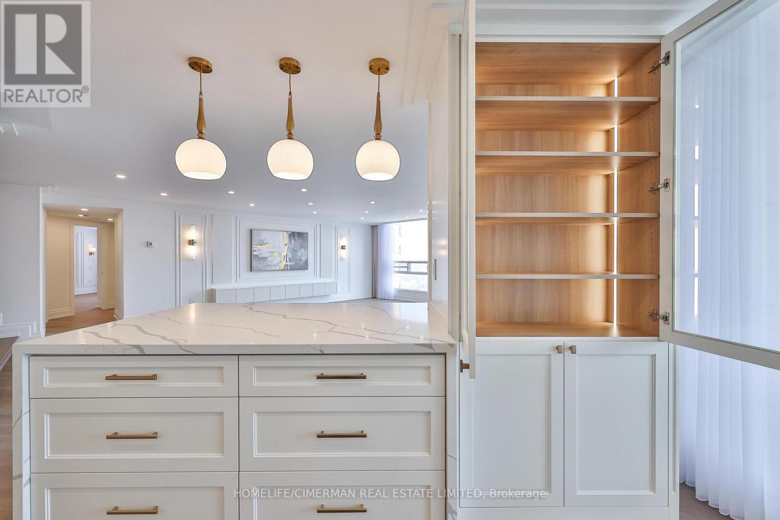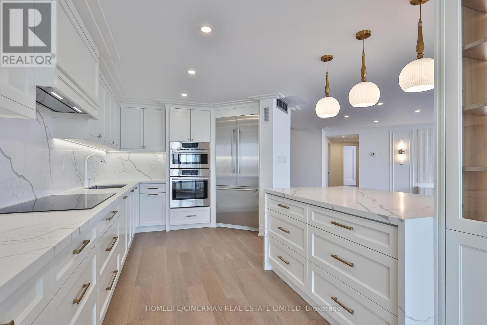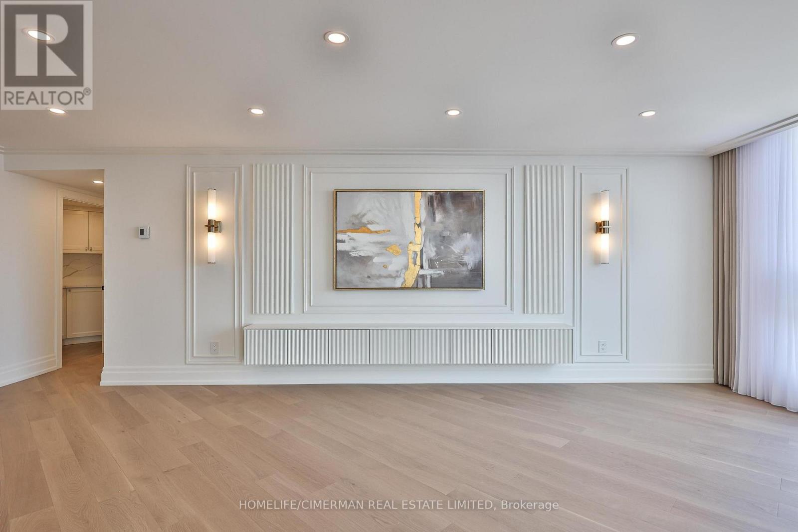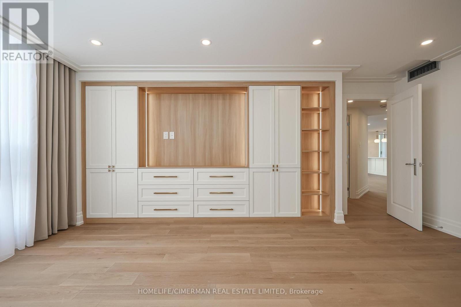 *Perched on a high floor within one of Forest Hill's most distinguished boutique residences, this exceptional suite has been completely redesigned and finished to the highest standards* Showcasing breathtaking, unobstructed southeast views of the city skyline, floor-to-ceiling windows flood the home with natural light and frame magnificent panoramic vistas , creating a bright and elevated atmosphere throughout*Offering 1,939 sqft of beautifully finished interior space, including an approximately 200 sqft solarium-style enclosed balcony, the residence impresses with its generous scale and seamless layout. The solarium serves as a versatile extension of the living area - ideal as a home office, reading retreat, or tranquil lounge overlooking the city. The open-concept design flows effortlessly, with well-proportioned bedrooms thoughtfully positioned for privacy and comfort*Every detail has been carefully curated*Premium engineered hardwood flooring, extensive pot lighting, and elegant crown mouldings enhance the sophisticated interior* A custom built-in living room wall unit creates a stunning focal point, blending style and functionality*The designer kitchen is both elegant and practical, featuring quartz countertops and backsplash, a centre island with breakfast bar, pantry, and abundant custom cabinetry*The spa-inspired ensuite offers a custom vanity with built-in drawers and shelving, heated towel bar, and a separate glass-enclosed shower with bench seating - delivering a true retreat experience* Bedrooms are equipped with custom built-in organized closet systems*A separate laundry room adds convenience with side-by-side washer and dryer, built-in storage cabinetry, and an undermount sink* Exceptional millwork and refined hardware complete this sophisticated home*This intimate boutique bldg offers 24hr security, visitor parking, indoor pool, sauna, and recreational room - delivering an exclusive lifestyle defined by privacy, comfort, and uncompromised luxury* (id:31565)