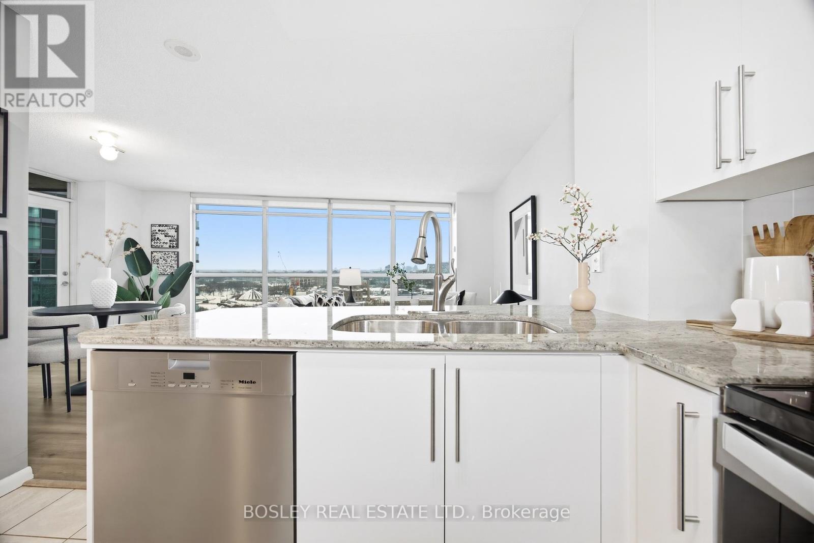 Step Into This Oversized One-Bedroom Corner Suite, Offering 665 Sq Ft Of Bright, Functional Living Space. The Open-Concept Layout Features 9' Ceilings And Floor-To-Ceiling Windows Spanning The Full Width Of The Unit, Creating An Airy Feel And Showcasing Unobstructed Panoramic Views Overlooking The Fort York Bentway West Through To The Humber Bay. This Suite Has Been Thoughtfully Updated Throughout. The Kitchen Features Refreshed Cabinetry, Granite Countertops, Stainless Steel Appliances, And Plenty Of Storage Space. The Spacious Living And Dining Areas Can Accommodate A Work-From-Home Setup, While Still Leaving Enough Room To Relax And Dine. The Bedroom Offers Stunning West Views, A Semi-Ensuite Bath, Two Closets And Is Large Enough To Fit A King-Sized Bed. Waterpark City Is A Top-Tier Building, Offering 24-Hour Concierge, Indoor Pool And Sauna, Full-Size Gym, Party Room, Guest Suites, Rooftop Terrace With Jacuzzi And BBQ Area, And Ample Visitor Parking. A Rare Corner Layout, Meaningful Updates, And Exceptional Views In A Prime Waterfront Location. (id:31565)