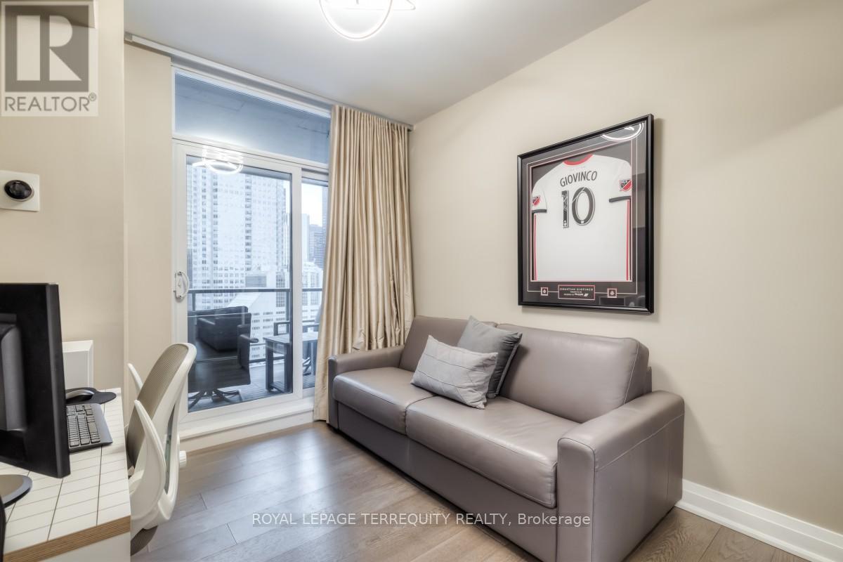Welcome to London on the esplanade, where stylish downtown living meets comfort and convenience in this beautifully maintained 2 bedroom 2 bathroom corner suite on a high floor. Offering approximately 955 sq ft of well designed space, this bright unit features floor to ceiling windows that dill the home with natural light, an open concept living and dining area, and a private balcony with stunning city views. The modern kitchen is equipped with stainless steel appliances, granite countertops, and ample storage, perfect for everyday living and entertaining. The spacious primary bedrooom includes a walk in closet and a 3 piece ensuite, while the second bedroom is ideal for guests,a home office, or additional living space. Enjoy the convenience of in suite laundry,central air conditioning, window coverings, 1 underground parking space, and 1locker. Residents have assess to premium building amenities including an outdoor pool, gym, rooftop terrace with BBQs is on the second floor, party room, theatre room, library, guest suites, concierge, and visitor parking paid parking. Located just steps to St. Lawrence Market, St. James Park, the Financial District, Union Station,TTC, the waterfront, and some of Toronto's best dining, cafes, and shopping,this is an ideal home for professionals seeking a vibrant and connected lifestyle. (id:31565)