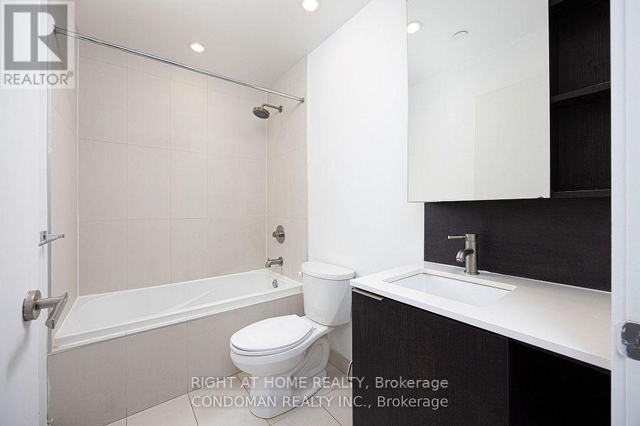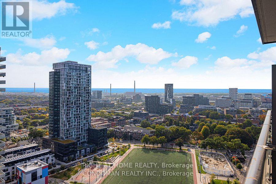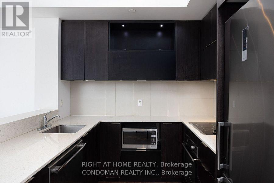 Beautiful, open view from the 23rd floor & perfect rectangular layout! Enjoy gorgeous open city view from your large balcony. Sleek, dark finishes including built in high-tech appliances, wide-plank cocoa flooring& waterfall Quartz Island!! Ideal layout w Living&dining area, window in bedroom & fits queen, balcony fits table/chairs. Includes one parking & locker. Shows like a model suite in the sky! Amenities include: half-court basketball, gym, squash courts, fitness ctr, steam room, party room, rooftop terrace. Close to the Eaton Centre, Ryerson, Ttc, highways, athletic grounds, aquatic centre & all that downtown has to offer. (id:31565)
