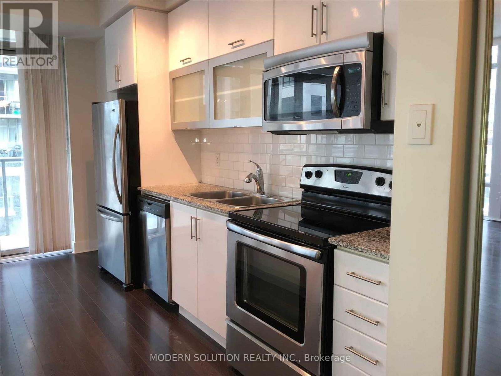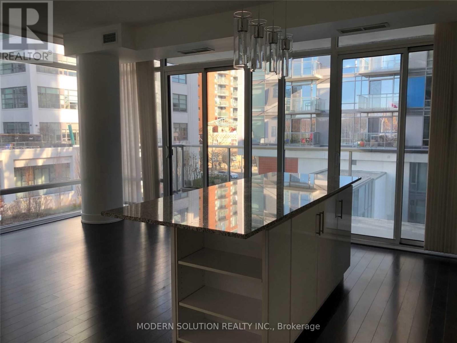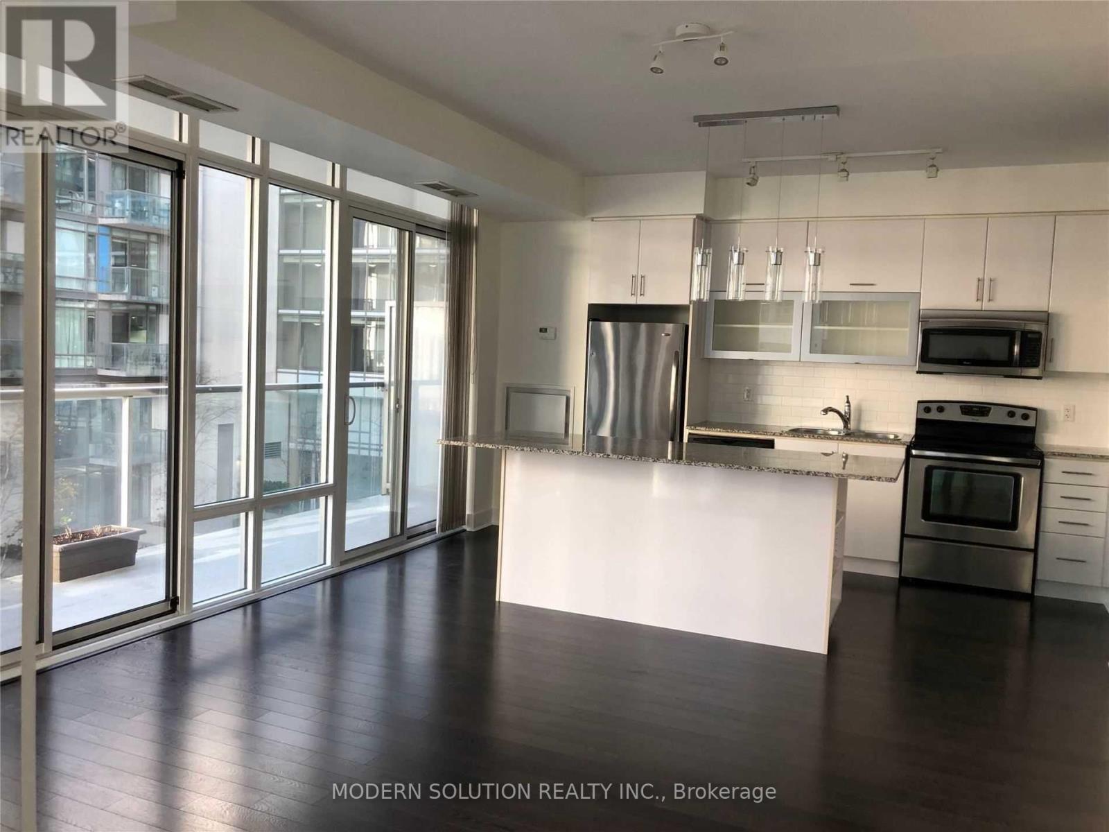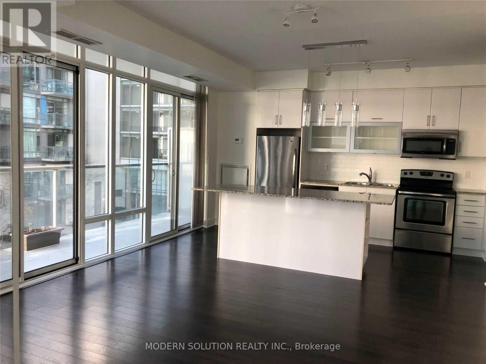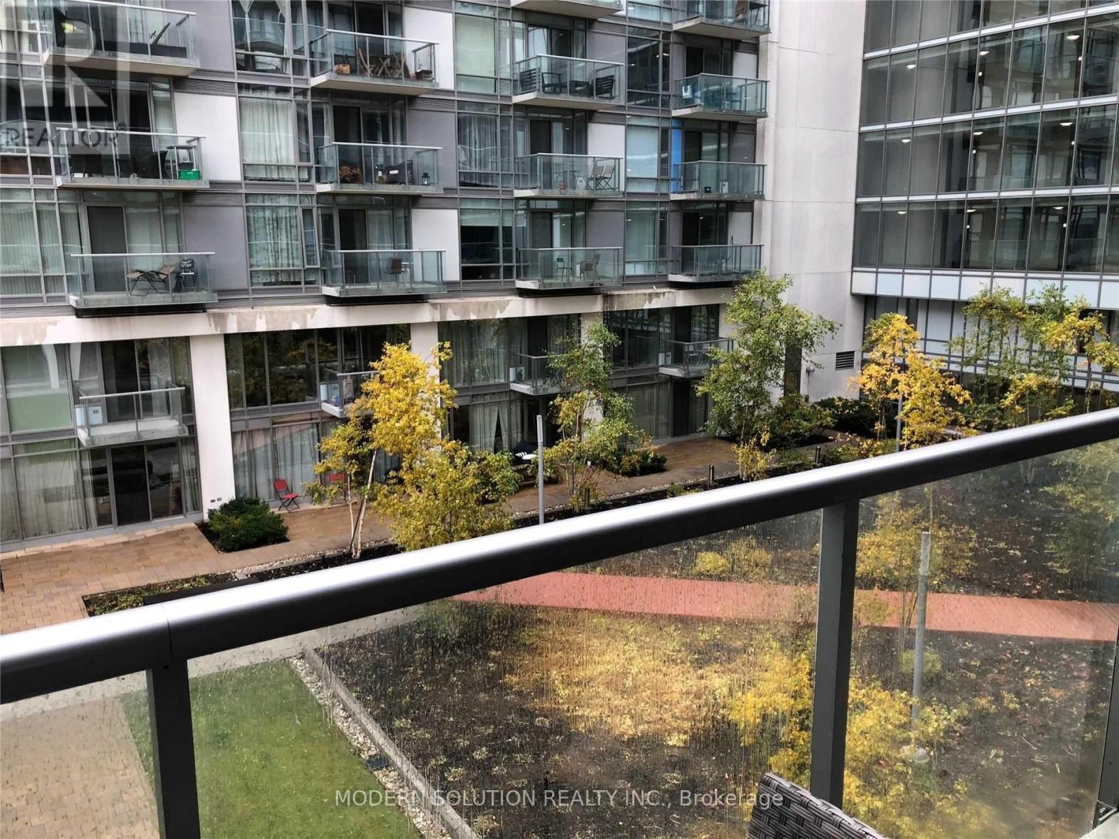 Experience stylish, modern living in this beautifully upgraded suite, offering nearly 700 sq. ft. of thoughtfully designed space in the vibrant heart of Toronto's waterfront Quay West district. 1 Bed + 1 den stunning residence delivers luxury living in an unbeatable location.The open-concept layout is enhanced by soaring 9-ft floor-to-ceiling windows that flood the space with natural light, complemented by elegant wood flooring throughout. The contemporary kitchen features granite countertops and a sleek eat-at island-perfect for both everyday living and entertaining.The spacious bedroom boasts large closets with built-in organizers, while the versatile den offers the perfect space for a home office or dining area. Step out onto the expansive balcony overlooking a serene interior courtyard-your private urban retreat.Includes 1 parking spot, 1 locker, and visitor parking. Just seconds from Lake Ontario, scenic waterfront trails, parks, and a dog park. Steps to cafés, restaurants, and TTC for ultimate convenience.A perfect blend of comfort, style, and waterfront living. (id:31565)