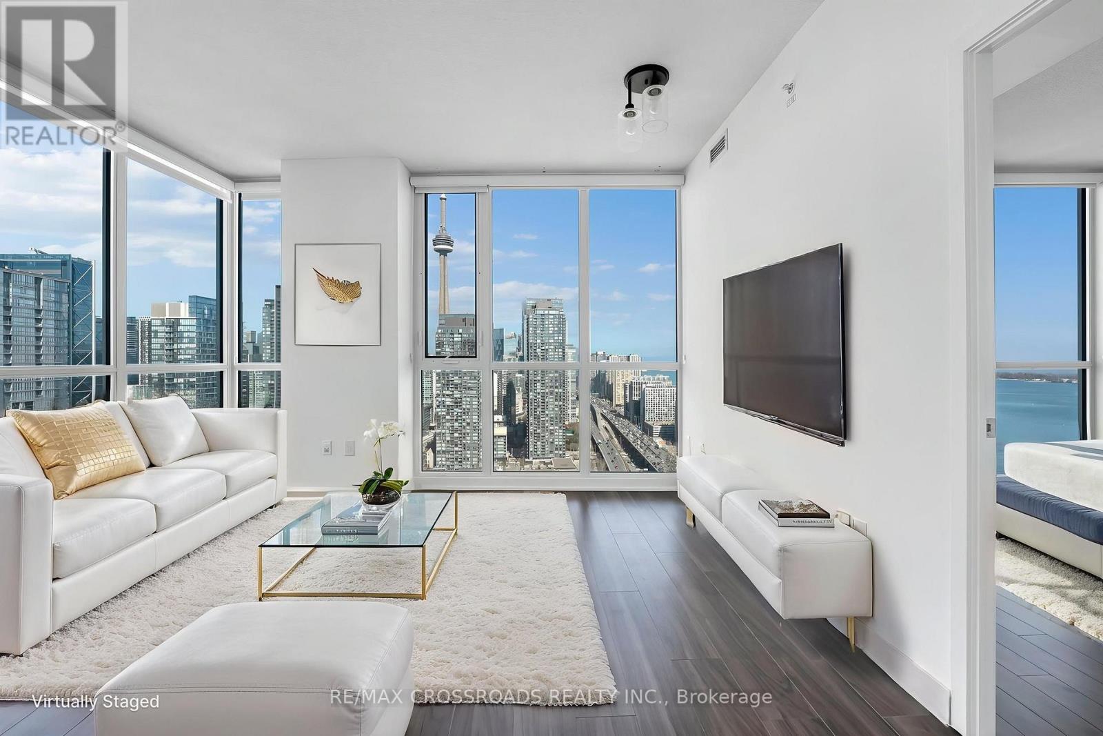 Perched on the 39th floor, this stunning 2-bedroom, 2-bathroom corner suite offers breathtaking, unobstructed views of both the city skyline and Lake Ontario. Enjoy floor-to-ceiling windows that flood the space with natural light, paired with an open-concept layout designed for both comfortable living and stylish entertaining. Step out onto your private balcony and take in panoramic views that truly elevate everyday living. Thoughtfully designed, the suite features a modern kitchen with stainless steel appliances, an eat-in area, and a seamless flow into the living and dining space. The split-bedroom layout provides privacy, while the spacious primary retreat includes ample walk in closet space and a full ensuite. Located in the heart of Toronto's vibrant CityPlace/Waterfront community, you're just steps from transit, parks, the waterfront, groceries, dining, and entertainment. Residents enjoy access to an exceptional range of amenities including a fitness centre, indoor pool, rooftop terrace, party room, concierge service, and more...offering a true urban lifestyle experience. AAA tenants only. Rental application to include full credit report, employment verification, proof of income, and landlord references. (id:31565)