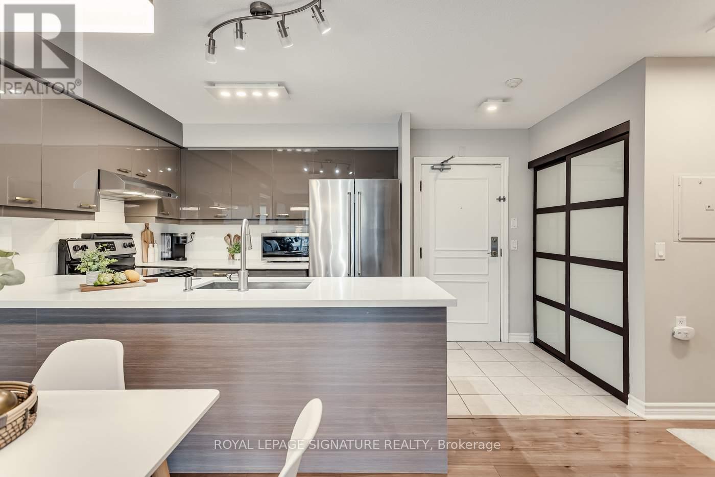 If you've been looking for an exceptional three bedroom condo, then stop what you're doing, and make sure to check out 890 Sheppard Ave W#601. Located in beautiful Bathurst Manor, this spacious, over 1000sf interior plus balcony, 3 bedroom and 2 full bathroom suite has been completely renovated and is located on the quiet north side of the building. The wide foyer with an extra large coat closet and custom built-ins opens into your open concept and well designed kitchen, living and dining room. The custom modern kitchen is both stylish and functional, complete with a sleek backsplash, quartz countertops and stainless steel appliances. The living and dining room feature laminate flooring, large windows that flood the space with natural light and a walk-out to a generous private balcony. The primary bedroom features a renovated four-piece ensuite, a second walk-out to the balcony and a double closet with custom built-ins. A second renovated four-piece bathroom conveniently serves the additional bedrooms and guests. Two more roomy bedrooms and ensuite laundry completes the space. For added comfort and convenience, the owner enjoys full control of the heating and air conditioning directly from their unit, allowing for personalized, year-round climate control. Set within a quiet, boutique low-rise building, residents enjoy a fitness centre, sauna, party/meeting room, rooftop patio with BBQ's and visitor parking. The location offers exceptional convenience - just steps to the Sheppard-West station, nearby parks and a well-regarded school district, with Yorkdale Shopping Centre, dining, and the Allen Expressway only minutes away. Move-in ready and offering one parking space and a convenient same-floor storage locker, this outstanding home delivers space, comfort, and lifestyle in one of North York's most established and desirable neighbourhoods. (id:31565)