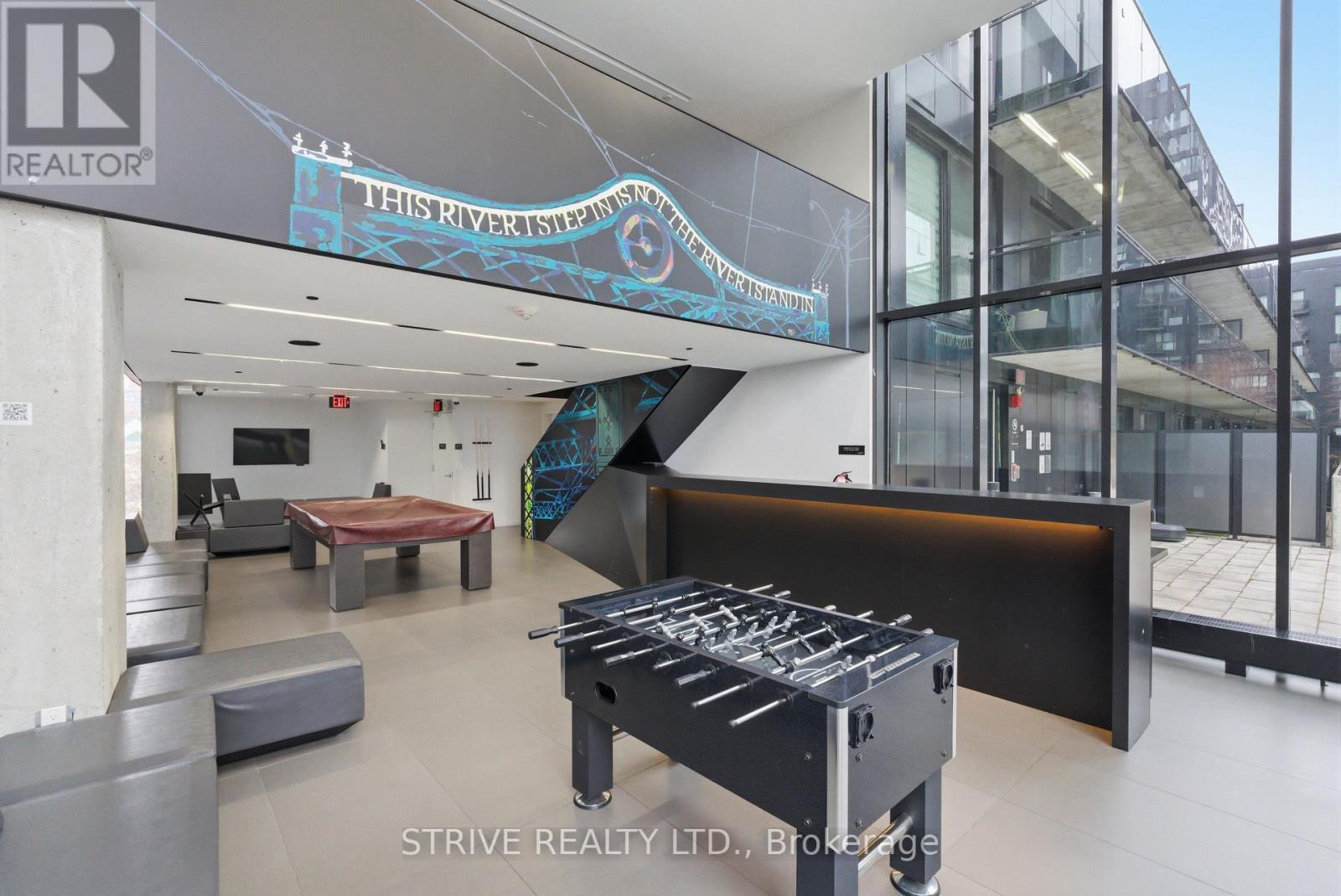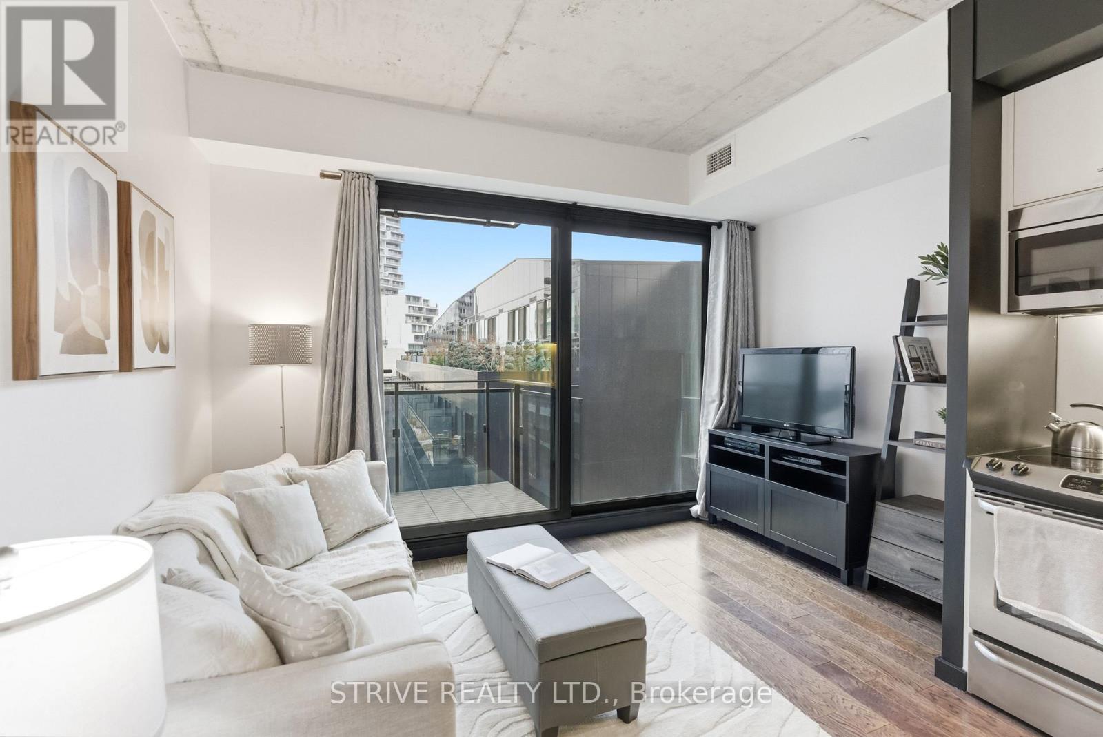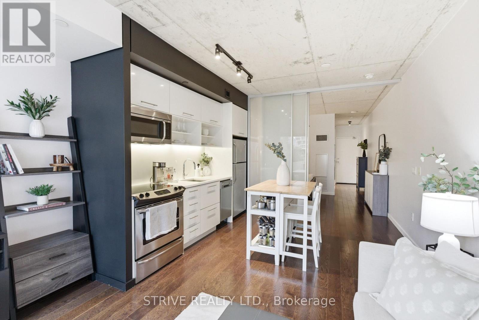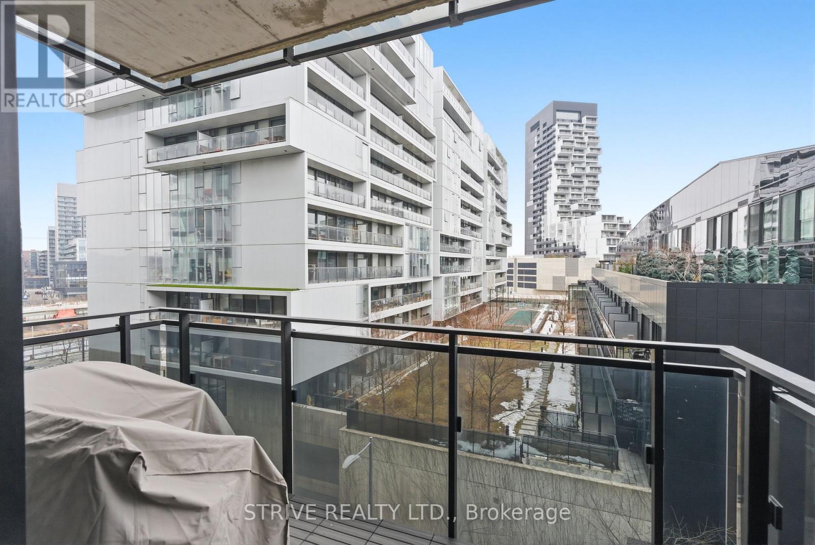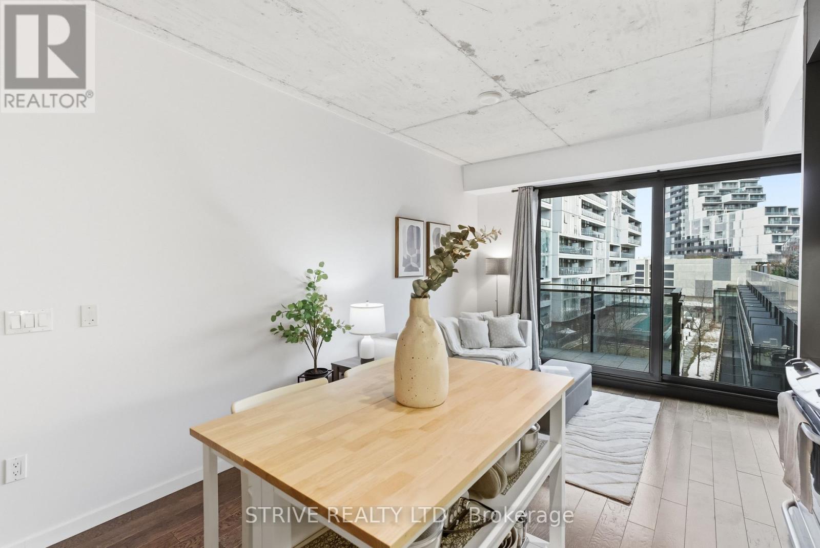 Completed in 2013, River City Phase 1 is a LEED Gold-certified building in the vibrant Corktown and West Don Lands communities, with easy access to Riverside, Leslieville, the Distillery District, St. Lawrence Market, Corktown Commons, the Don River Valley, Toronto's Waterfront Trail, and the DVP. The TTC 504 King streetcar is right at your doorstep with routes 503 and 501. This modern loft-style suite offers approximately 550 sq ft of functional living space, plus a 55 sq ft balcony with composite decking panels. Located on the 6th floor, the unit provides direct access to the interior walkway connecting to the adjoining building and outdoor courtyard and pool. It boasts a superior south-facing exposure overlooking the pool area, flooding the space with natural light. Features include 9-foot exposed concrete ceilings and stylish walnut hardwood flooring throughout. The contemporary white kitchen is equipped with stainless steel appliances, new dishwasher, and grey quartz countertops. The spa-inspired, fully tiled bathroom features a soaker tub, updated vanity and toilet, mirrored cabinet, and convenient ensuite laundry. Outstanding building amenities include 24-hour concierge, outdoor courtyard and swimming pool with community BBQ areas, fully equipped fitness centre, two spacious party rooms with lounge, bar, kitchen, dining area and billiards table, guest suite, and sun deck. Come make the celebrated River City development your home and enjoy the perfect blend of modern living, convenience, and style. (id:31565)