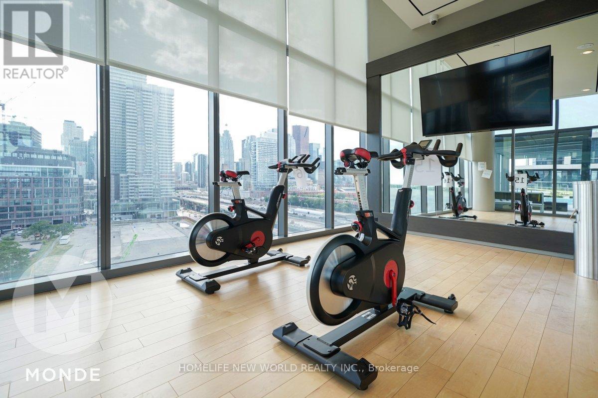 Welcome to Monde by award-winning builder Great Gulf. The 912 sq. ft. corner unit features an excellent layout offering 2 bedrooms plus den and 2 full baths. Windows in every room bring in natural light and showcase southwest views of the lake and city. Large bedrooms feature generous closet space. Open-concept living and dining area with walkout to balcony. Kitchen includes an island with integrated dining space. ** Includes parking and storage locker **. Steps to the waterfront, Sugar Beach, George Brown College, Loblaws, Corus Entertainment, with easy access to Union Station, DVP, and Gardiner Expressway. (id:31565)